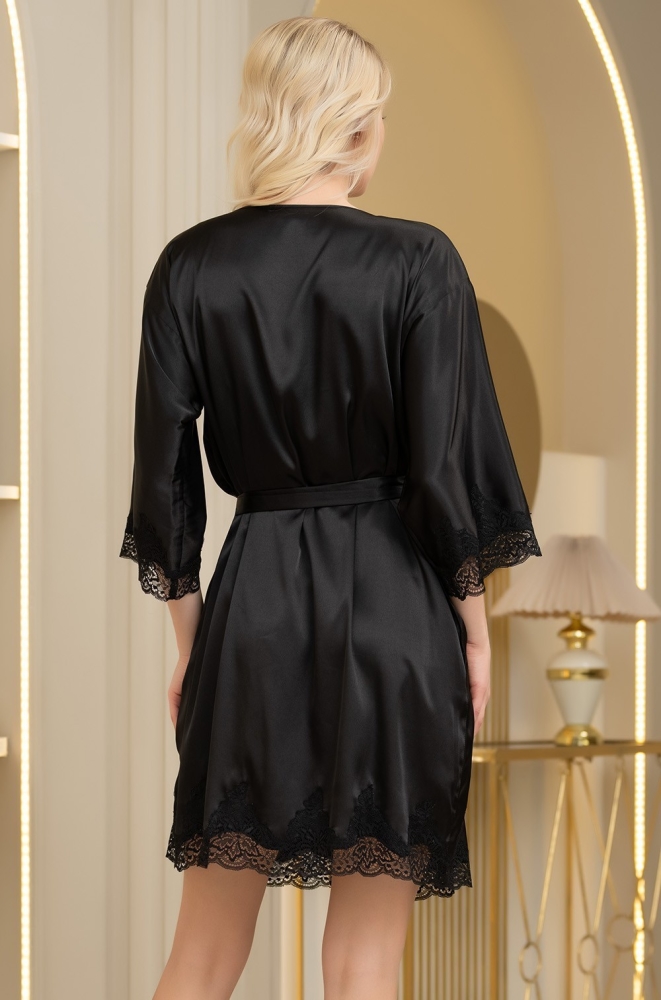 Короткий халат Mia-Amore выполнен из смесового шелкового полотна. Борт, низ халата и рукавов декорированы тонким кружевом, вырезанная по форме кружева кромка ткани придает удивительную воздушность модели. Дизайн коллекции - студия Angelo Bellini (Milano) Состав: 70% натуральный шелк, 25% полиэстер, 5% эластан