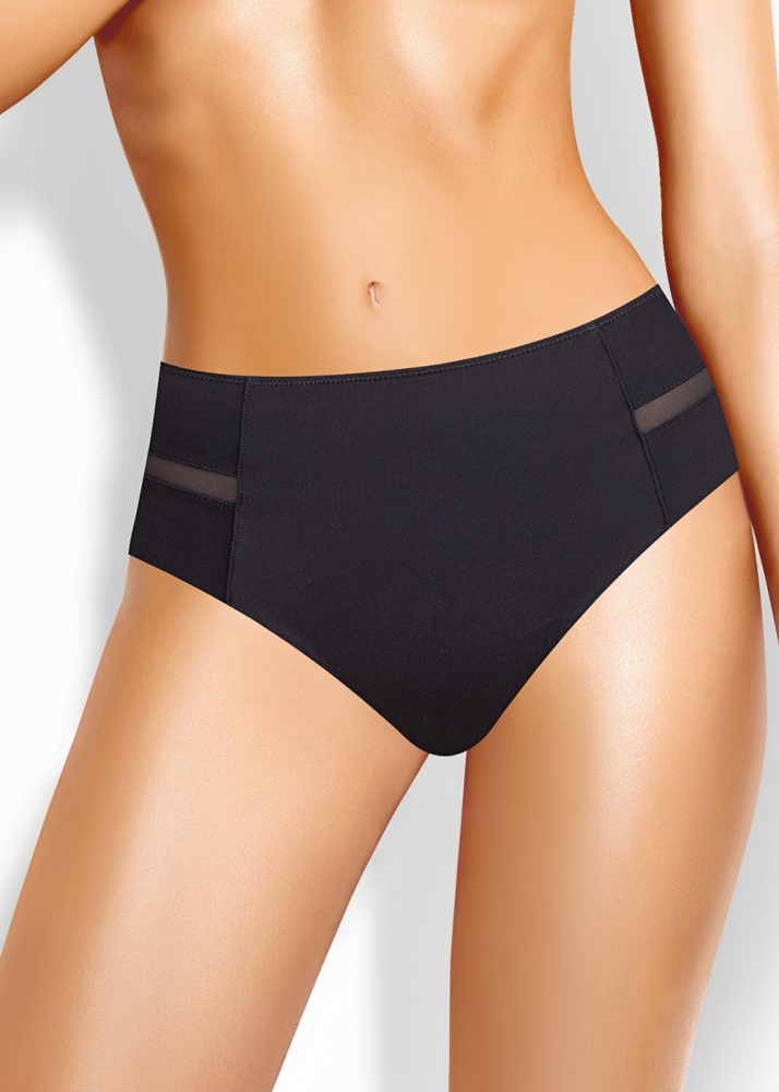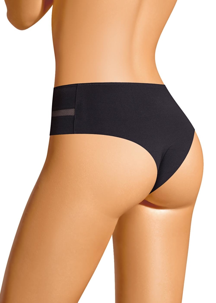 Описание: Трусы бразилиана с завышенной посадкой, сзади и сбоку бесшовная гладкая обработка, спереди декоративные горизонтальные вставки из плотной сетки, перед дублирован сеткой, по талии обработка с зигзагом и узкой резинкой Состав: 66% полиамид, 34% эластан. Сетка: 86% полиамид, 14% эластан. Ластовица: 100% хлопок Страна: КИТАЙ