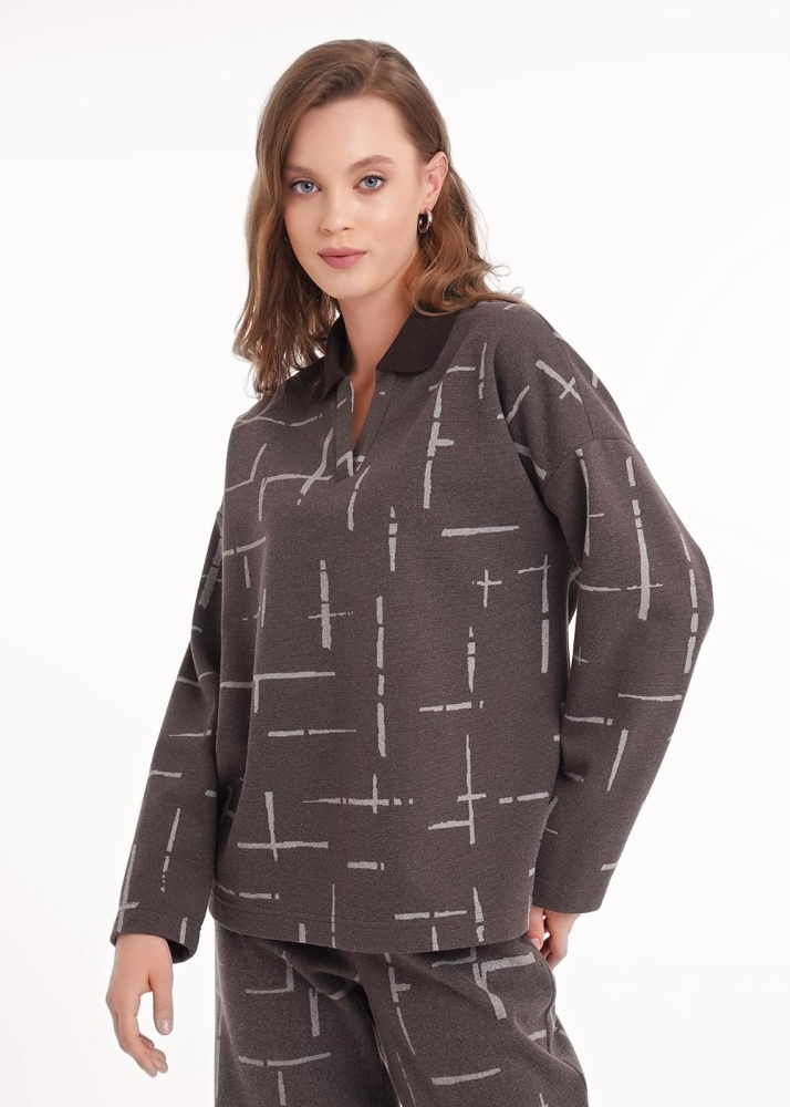 Описание: Джемпер прямого силуэта из поливискозного трикотажного полотна джерси. Спущенный длинный рукав. По горловине отложной вязаный воротник с планкой. Боковые разрезы. Состав: 100% полиэстер Страна: РОССИЯ