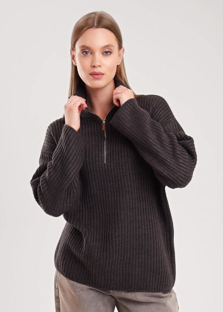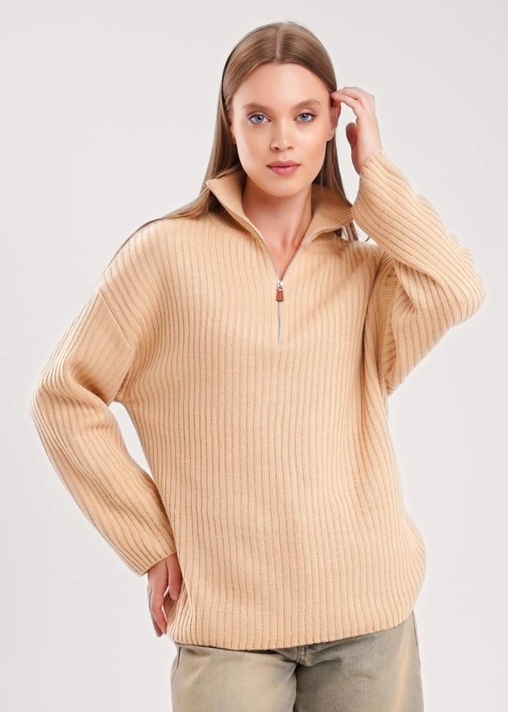 Описание: Вязаный джемпер умеренного объема из акриловой пряжи с добавлением шерсти, переплетения полуфанг. Спущенный длинный рукав. По горловине стойка с застежкой на молнию. Состав: 77%Акрил13%Шерсть 10%Вис Страна: РОССИЯ