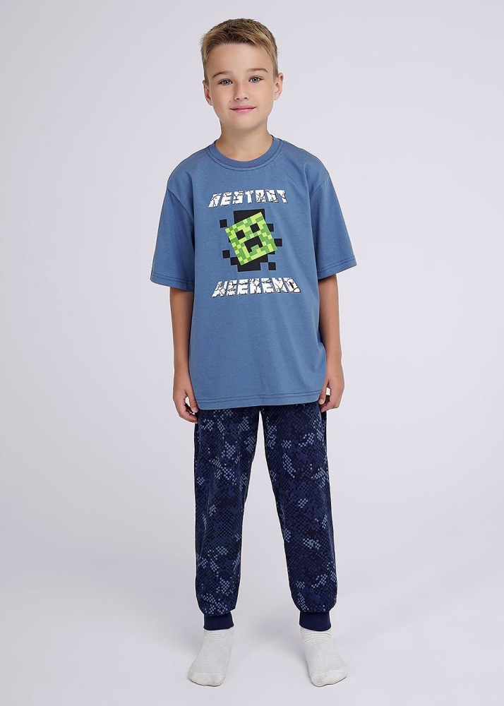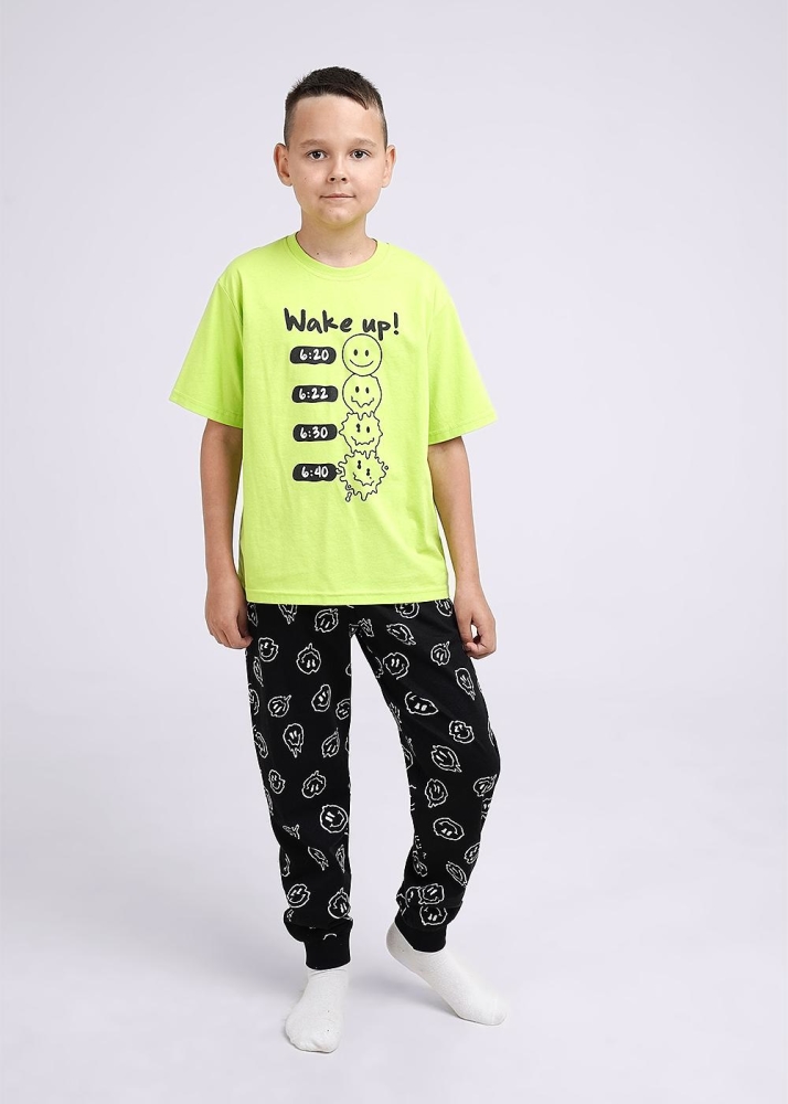 Футболка среднего объёма с эластичной горловиной и тематичным принтом. Набивные брюки (арт.909530кд_п н) с эластичными манжетами, резинка по поясу для комфортной посадки.Уют и комфорт на каждый день! Состав: 100% хлопок Страна: РОССИЯ