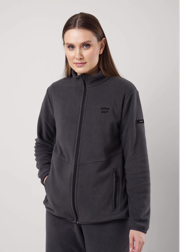 Описание: Куртка спортивная прямого силуэта из трикотажного полотна флис, на молнии. По горловине стойка. Спереди горизонтальный рез, карманы на молнии. Длинный рукав со спущенной линией плеча, нашивка.По низу рукава и низа изделия окантовка. Спереди вышивка. Состав: 100% полиэстер Страна: РОССИЯ