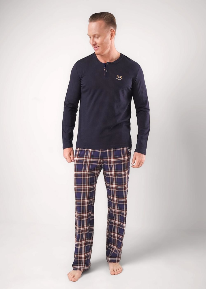 Описание: Набор мужской состоящий из джемпера и брюк. Джемпер из трикотажного полотна с функциональной планкой, длинным рукавом и вышивкой. Брюки из клетчатого трикотажа с карбоном на широком поясе с резинкой и регулируемым шнуром, по бокам удобные карманы. Состав: 92% хлопок, 8% эластан Страна: РОССИЯ