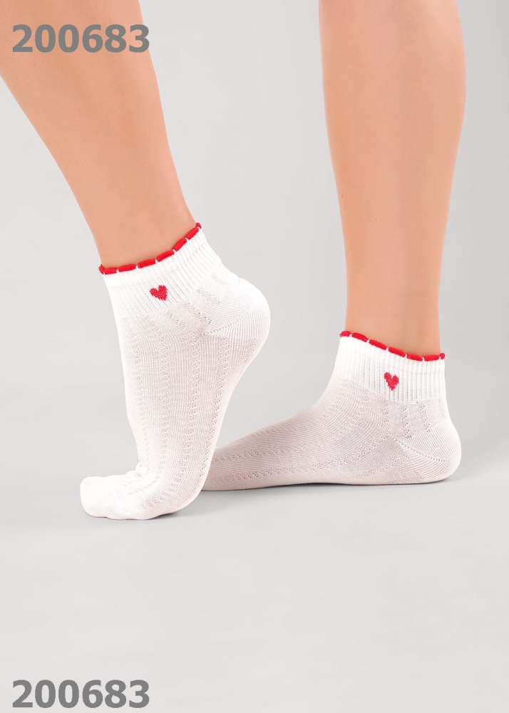 Описание: Женские носки с рельефным узором и сердечком. Состав: 70% хлопок, 25% полиамид, 5% ПУ(эластан) Страна: РОССИЯ