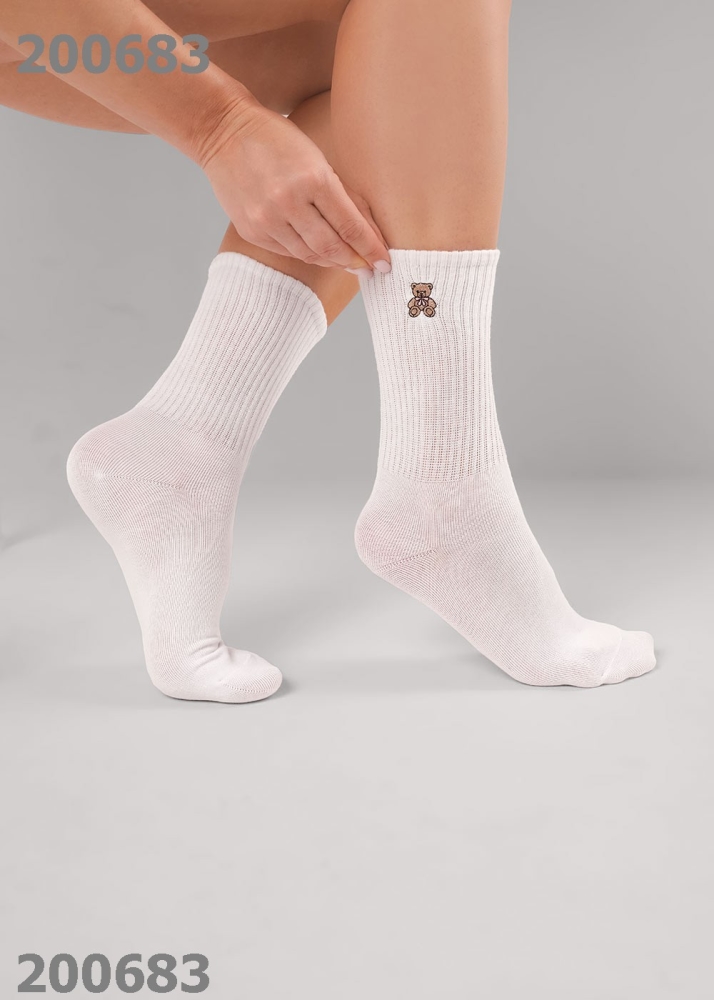 Описание: Женские носки с вышивкой мишка. Состав: 70% хлопок, 25% полиамид, 5% ПУ(эластан) Страна: РОССИЯ