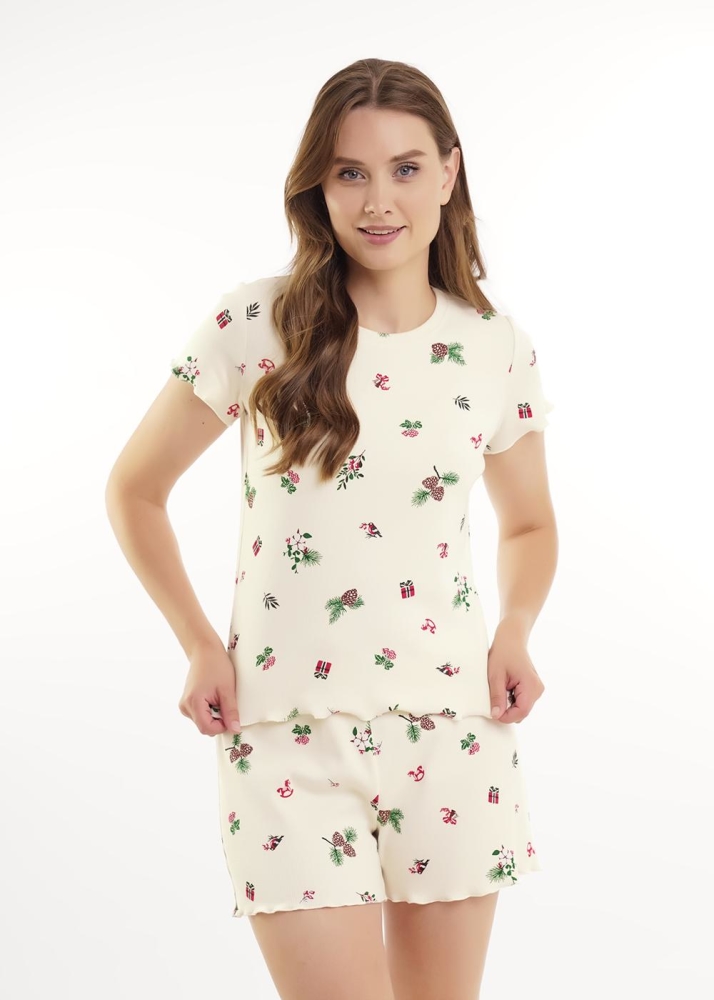 Описание: Пижама из трикотажного полотна кашкорсе с эластаном. Футболка прямого кроя, короткий втачной рукав, округлая горловина с обтачкой. Шорты свободные, короткие. По поясу с внутренней резинкой, нашивка бант. По низу футболки, рукавов и шорт мелкий оверлок. Состав: 95%Хлопок5%Эластан Страна: РОССИЯ