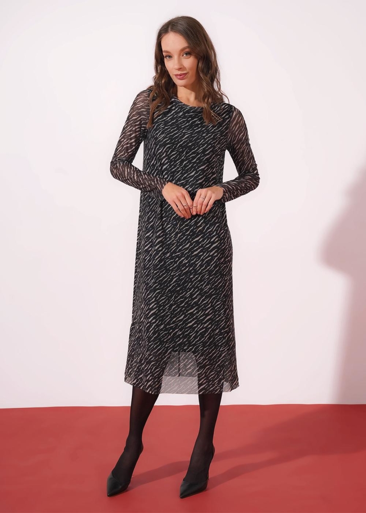 Описание: Платье из трикотажного полотна сетка мягкая, длиной миди. Спинка и полочка на подкладе. Длинный втачной рукав. Округлая горловина с обтачкой. По спинке средний шов. По низу рукава и изделия открытый срез. Состав: 100%ПЭ Страна: РОССИЯ