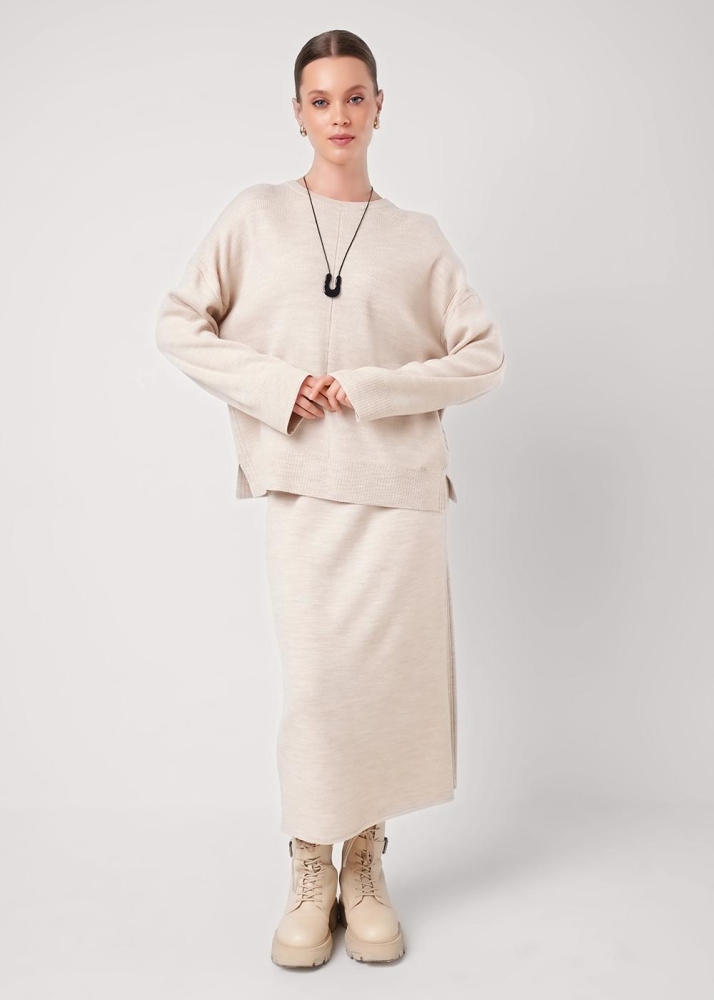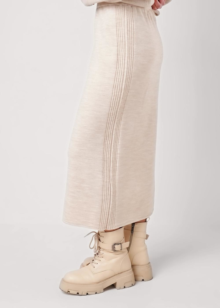 Описание: Вязаная юбка прямого силуэта длиной миди из акриловой пряжи переплетение гладь. Боковые вертикальные полосы. По талии пояс на внутренней резинке. Состав: 100%Акрил Страна: РОССИЯ