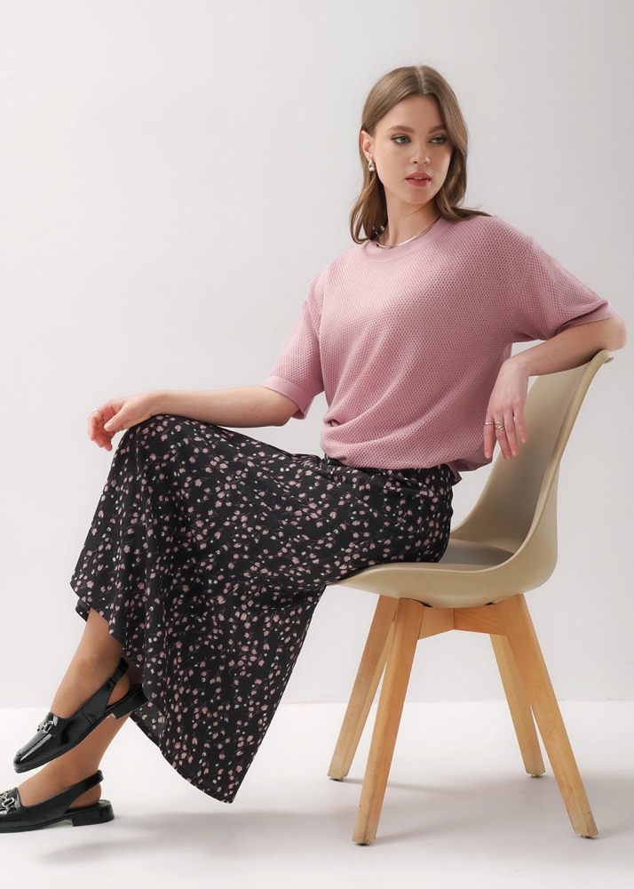 Описание: Юбка миди из фактурного трикотажного полотна джерси, А-образного силуэта. По талии внутренняя резинка. По спинке средний шов. Состав: 98%ПЭ2%ПУ(эластан) Страна: РОССИЯ