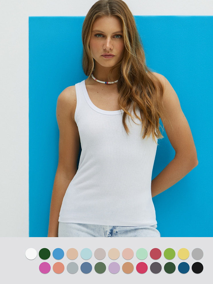 Женские майки MINIMI BMi_F 1321_01CE на широких бретелях, выполнены из хлопкового полотна кашкорсе, который отлично пропускает воздух, хорошо впитывает влагу и подходит даже для самой чувствительной кожи. Комфортно ощущаются благодаря эластичности материала и мягкими обработками швов. Прилегающий силуэт. Круглый вырез горловины. Горловина и проймы обработаны окантовкой из материала кашкорсе. Стильные, яркие и очень удобные – идеальная модель на каждый день, которая гармонично впишется в базовый гардероб.