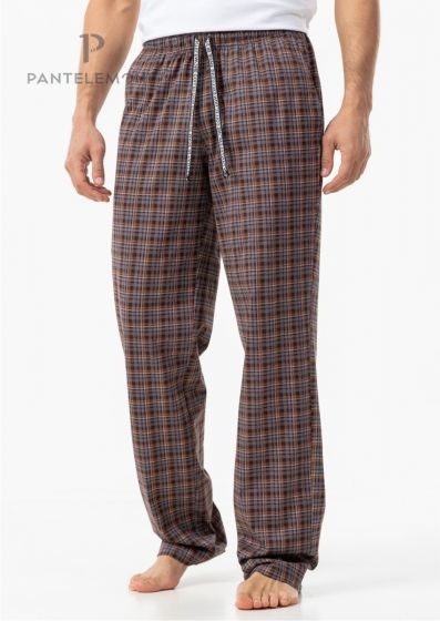 Брюки свободного кроя с цельнокроеным поясом, в поясе резинка и шнур. Выполнены из набивного полотна. Карманы наклонные. Состав: 100% хлопок